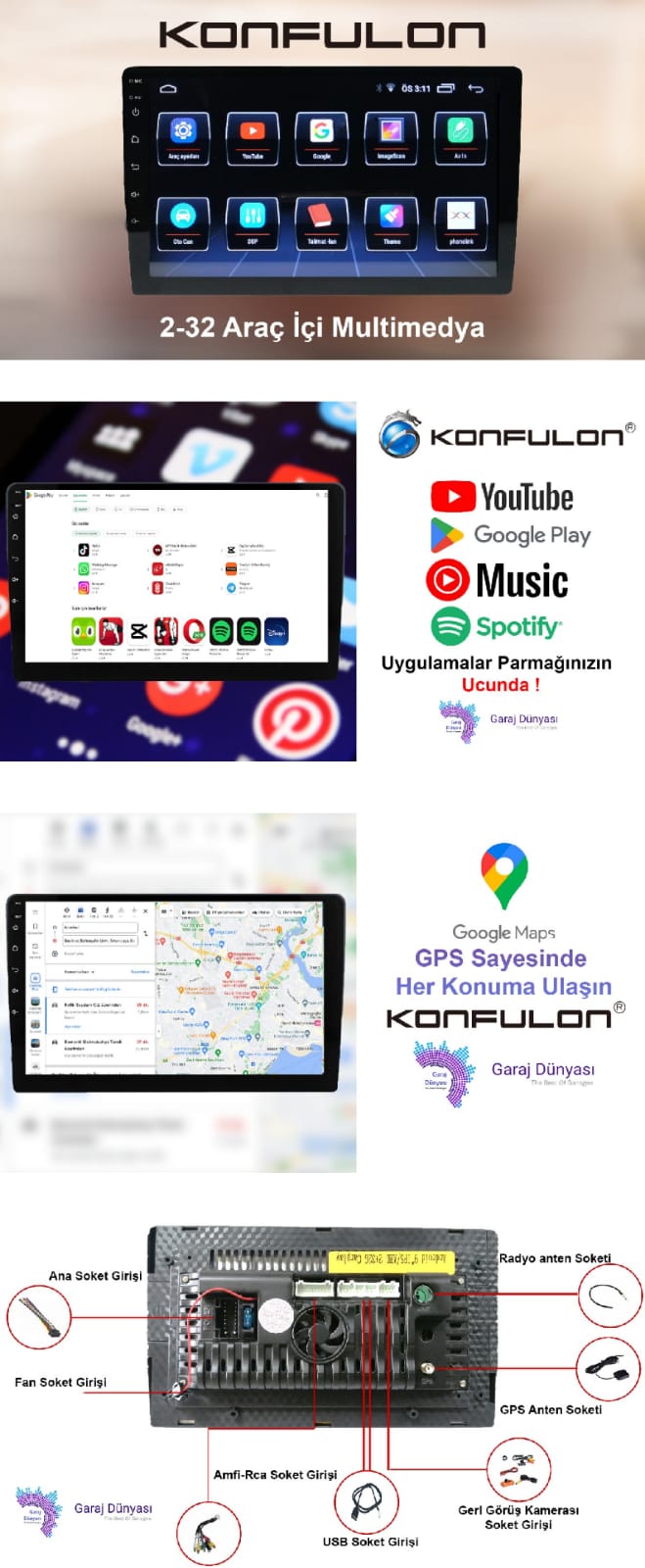 Garaj Dünyası Konfulon 2-32 GB 9 Inch Android Kapasitif Dokunmatik Ekran Soğutma Fanlı